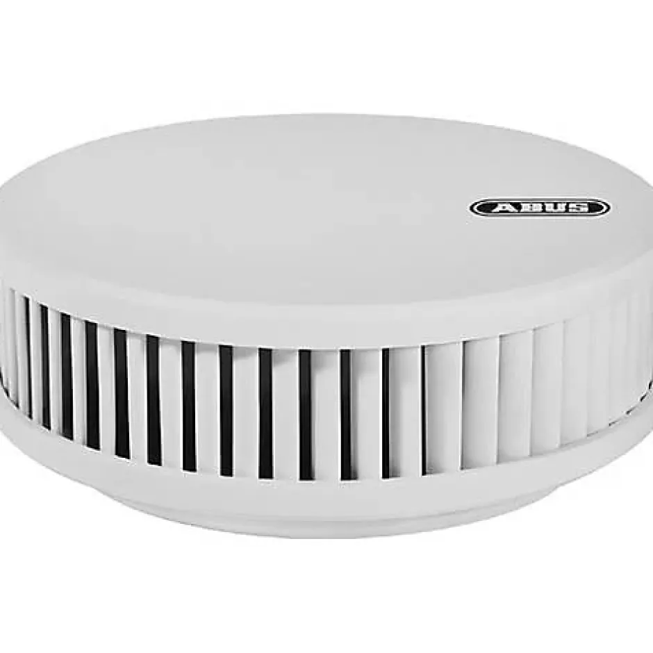 Détecteur ABUS RWM250 certifié Q-Label, capteur optique et capteur de température, alarme 88 dB, pile lithium intégrée 12 ans, montage sans perçage par pastille magnétique, compatible chambres, couloirs, cuisines et caravanes.