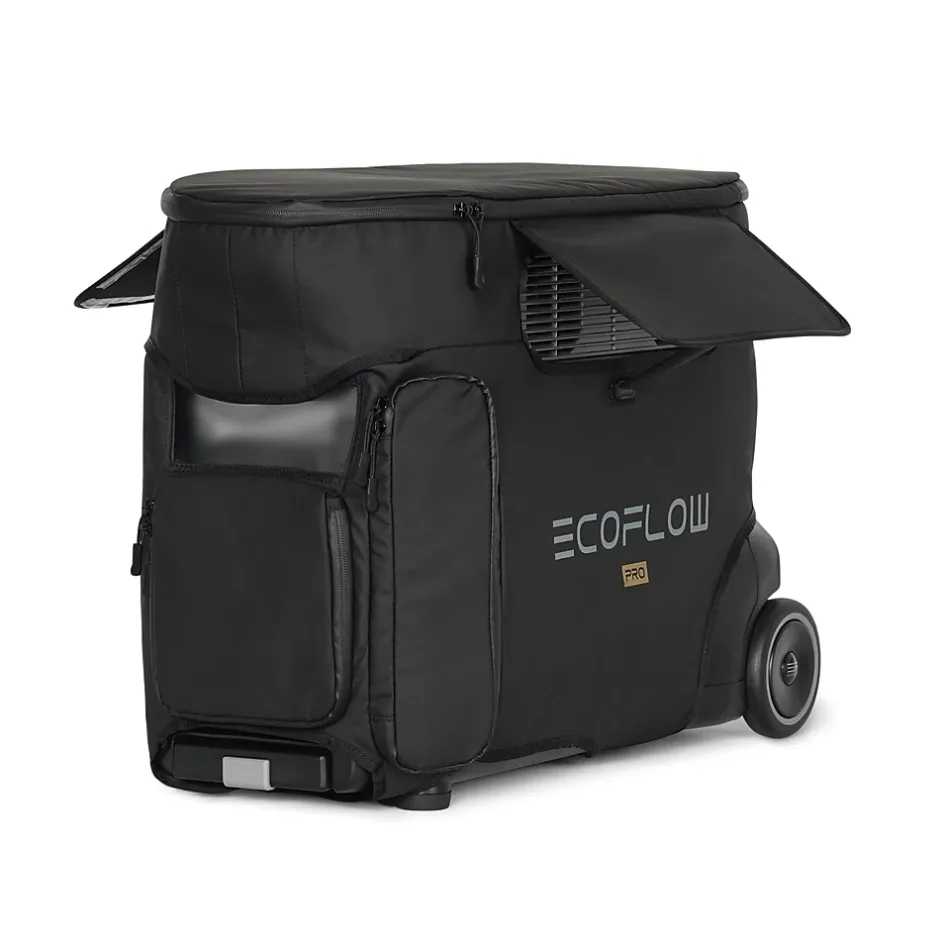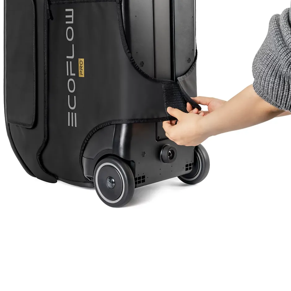 Le sac DELTA Pro d’EcoFlow garantit la facilité d’utilisation du système DELTA Pro tout en le protégeant de l’eau, des débris et des dommages lors de vos déplacements.
