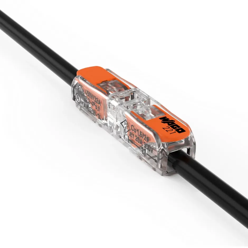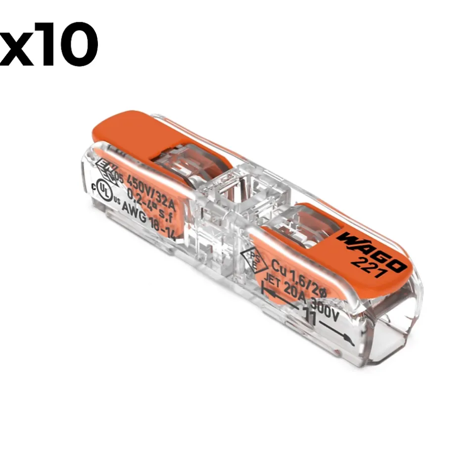 Caractéristiques de la borne à levier longitudinale pour fil rigide, semi-rigide et souple 0.2 à 4 mm² – WagoModèle : borne à levier longitudinale Série 221Pour fils rigides, semi-rigides et souplesSection des fils pris en charge : 0.2 à 4 mm²Tension de référence : 450 VCourant nominal : 32 ALongueur de dénudage recommandée : 11 mmEn sachet de 10Les bornes à levier longitudinales de la série 221 sont conçues pour simplifier vos travaux de câblage tout en garantissant une fiabilité optimale.Grâce à leur design ergonomique, elles permettent une connexion rapide et sécurisée de fils rigides, semi-rigides ou souples de sections allant de 0.2 à 4 mm².Avec une tension de référence de 450 V et un courant nominal de 32 A, ces bornes répondent aux exigences des installations domestiques et industrielles. Leur longueur de dénudage recommandée de 11 mm assure un contact optimal et une conductivité efficace.Livrées en sachet de 10, elles offrent une solution pratique pour les petites interventions ou les travaux ponctuels. Idéales pour gagner du temps et assurer une installation propre, ces bornes sont un choix judicieux pour des connexions fiables et durables.