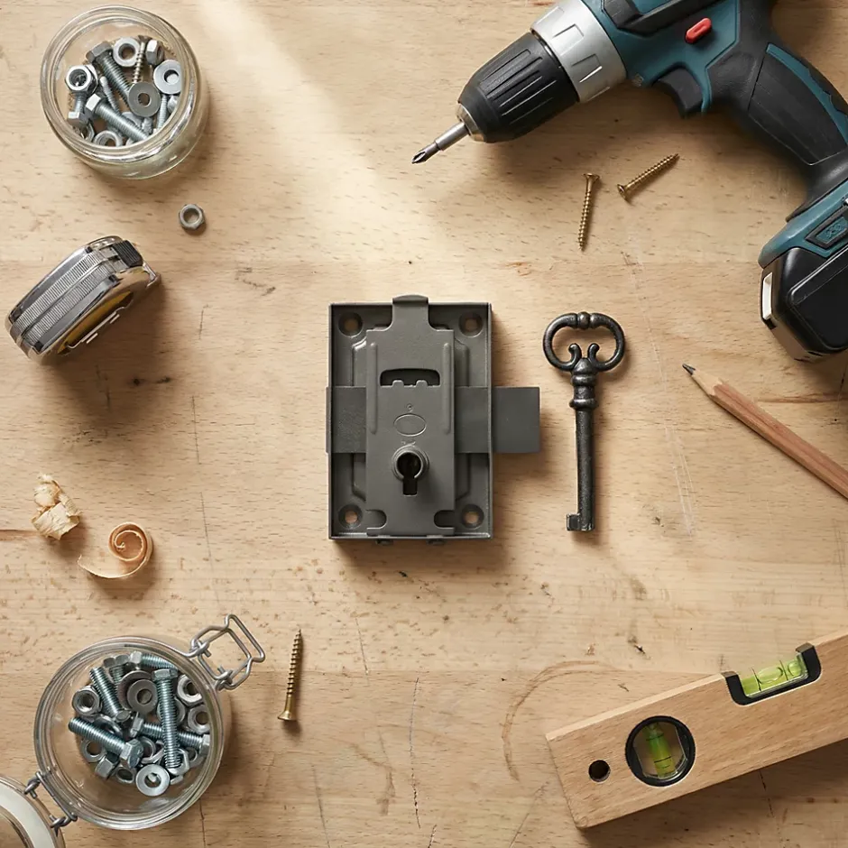 Serrure en applique axe 20 l. 40 mm x H. 70 mm x ep. 10 mm droite/gauche acier poli