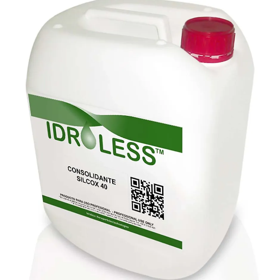 ❗ Silcox 40 Consolidateur anti-poussière pour le compactage des murs et des parois intérieures ❗Silcox 40 est un consolidant anti-poussière pour les surfaces avec des gravillons, des particules de coulis, de la poussière… Après l’application du consolidant, les surfaces seront compactées et pourront même repousser la poussière.Le consolidant Silcox 40 peut être appliqué sur pierre, mortier, brique apparente, plâtre… Le Silcox 40 est un consolidant incolore qui n’affecte pas la respirabilité naturelle des matériaux traités. ⁉️ Comment appliquer le consolidant de surface Idroless Silcox 40 ? Idroless Anti-Dust Consolidator sert de traitement pour les surfaces qui dégagent de la poussière ou du gravier. Silcox 40 durcit les matériaux, ce qui le rend adapté à la pierre, au talc, au mortier, au plâtre, à la brique, etc.Grâce à son grand pouvoir de pénétration, Silcox Consolidator compacte les surfaces, les empêchant de se désintégrer et agissant même comme un anti-poussière. Il s’agit d’un consolidant anti-poussière sans solvant, incolore et sans brillant qui ne modifie pas l’apparence des surfaces sur lesquelles il est appliqué, et ne crée pas de couches ou de films. Préparation des supports et application du consolidant Silcox 40:- Les surfaces sur lesquelles le consolidant sera pulvérisé doivent être sèches et exemptes de particules libres.- Nettoyez soigneusement la surface en éliminant tout le sable, la poussière, la graisse, etc. qui se sont déposés sur la surface à traiter. – Protéger les zones proches qui ne seront pas traitées pour éviter les éclaboussures de consolidant. – À l’aide d’un pulvérisateur ou d’un vaporisateur, vaporisez Silcox 40 sur le mur. Appliquer une seule couche avec une couverture approximative de 1 litre de consolidant pour 4 à 6 m², de bas en haut jusqu’à saturation du support.