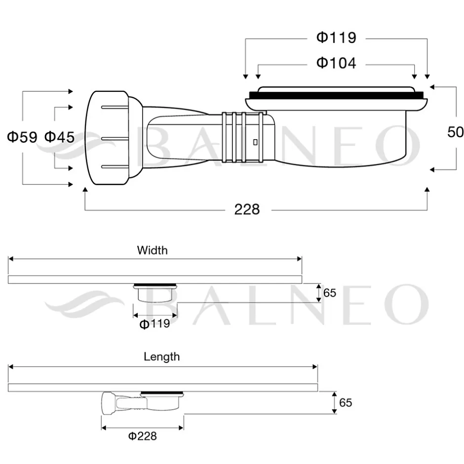 Avantages :Siphon adapté aux receveurs de douche Stone-Tray BalneoDisponible en deux hauteurs (68mm et 87mm)Peut être nettoyé (par le haut)Drainage rapideFabriqué en ABS durable de couleur blanche