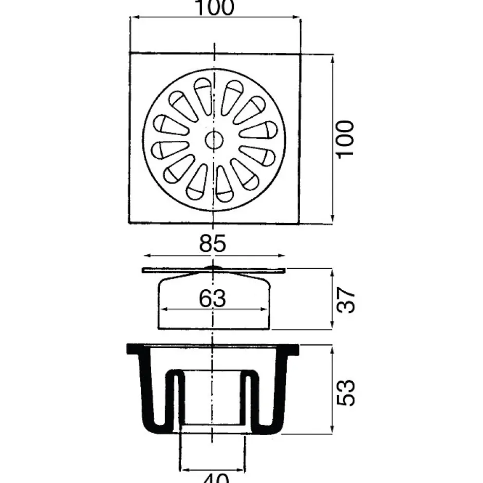 Avec grille en inox poli Sortie verticale diamètre 40 mm