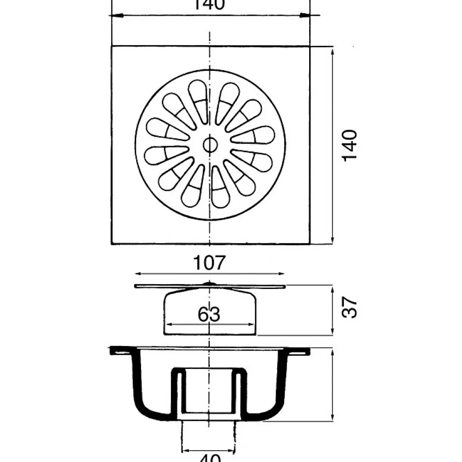 Avec grille en inox poli Sortie verticale diamètre 40 mm
