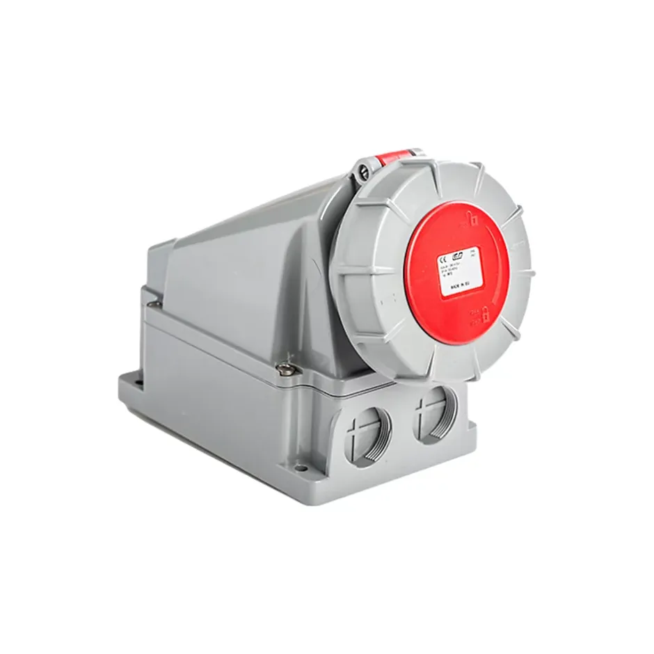 Socle de prise murale femelle tripolaire 4x63A – sans fil piloteConçue pour les installations industrielles exigeantes, cette prise femelle possède un certificat d’étanchéité renforcée IP67. Ce socle femelle 63A fonctionne en tripolaire (3P+T) sur une tension de 380V.Le raccordement de cette prise se fait par borne à vis avec une section de câble maximum de 25mm² en câble rigide et 16mm² en câble souple.Pour le câblage d’une prise murale, en 63A on utilise généralement du câble rigide 16mm² .Cette prise n’intègre pas de fil pilote. Elle reste compatible avec les prises mâles disposant d’un fil pilote mais la fonction contact pilote ne pourra pas être assurée.Ce socle de prise murale doit être protégé par un disjoncteur tripolaire 63A installé dans le tableau électriqueL’essentiel sur le socle 380VFabriqué en EspagneQualité professionnellePrise européenne CEE compatible toute marque (Legrand; Schneider…)Presse étoupe non fourni (voir accessoires compatibles ci-dessous)Étanchéité renforcée IP67