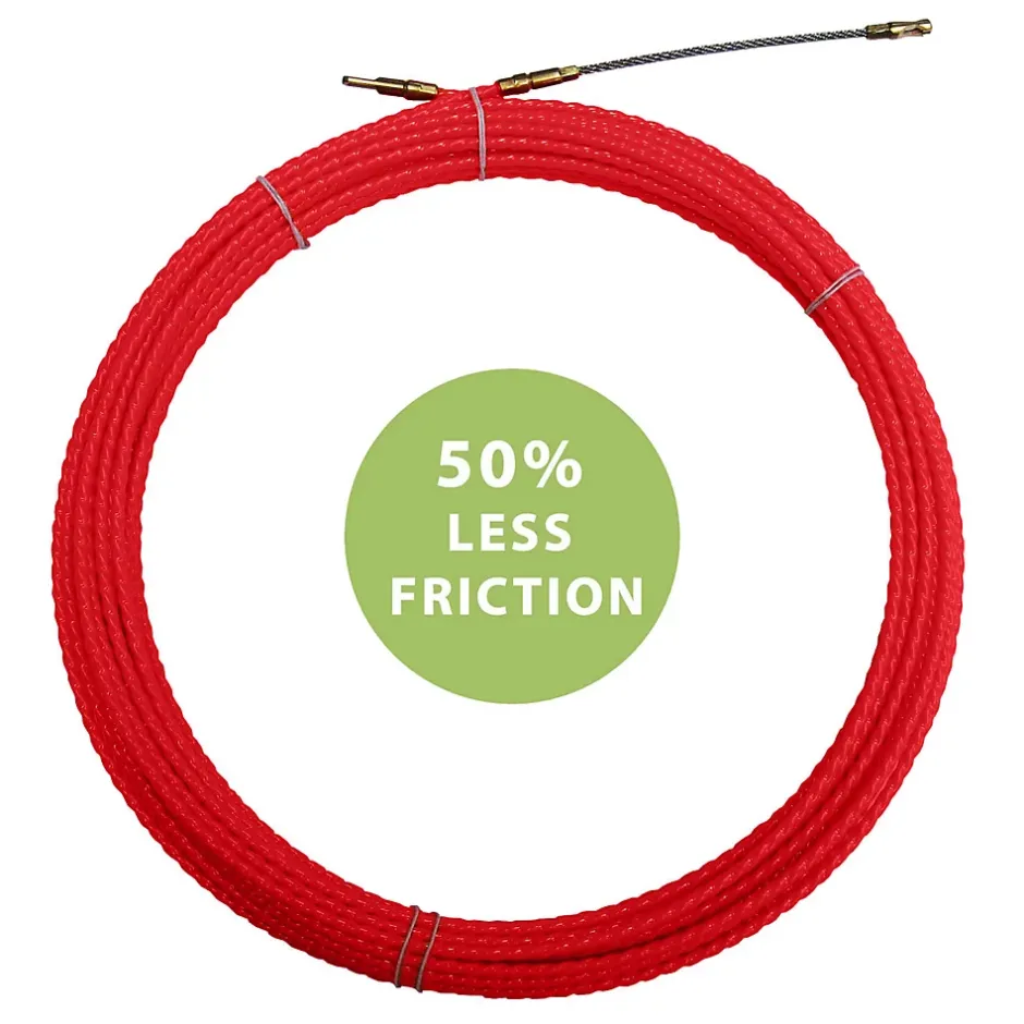 La sonde tire-fils est un long câble en fibre souple dont une extrémité est équipée d’un œillet d’arrimage et à l’autre d’une tête souple élastique. Elle est utilisée pour insérer des câbles électriques dans des tuyaux ondulés, les goulottes etcTire-câble hélicoïdal en polyester, rouge, diamètre 4,2 mm, 10 mètres, avec cosses M5 interchangeables. La sonde en polyester de ø 4,2 mm convient aux installations de systèmes électriques dans le secteur civil et est idéale pour les tronçons courts et sinueux. Les raccords en laiton interchangeables sont vissés directement sur du nylon ; avec une charge de rupture élevée, ils sont pratiques et faciles à remplacer. Il s’agit d’une sonde d’entrée de câble professionnelle qui réduit au minimum les frottements, car elle divise par deux la surface de contact de la sonde avec les parois du tuyau à insérer ou avec les câbles déjà présents dans le conduit. Les sondes hélicoïdales en polyester facilitent à la fois l’enfilage et l’opération de traction avec un gain de temps considérable ; ils sont équipés de bornes filetées en laiton qui permettent une interchangeabilité aisée des différents accessoires. Ainsi, même avec une sonde très longue, il sera possible d’insérer des sections courtes sans, pour cette raison, avoir à retirer toute la sonde. Après l’avoir inséré, il suffit de dévisser la pointe et de visser la borne, pour être prêt à tirer les câbles. Il a une pointe de guidage incurvée flexible perforée à la pointe et un tirant avec fente interchangeable; Plastique allemand, produit Made in Italy.