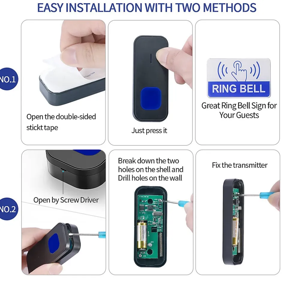[55 mélodies et 5 niveaux de volume] sonnette sans fil de haute qualité avec la puce musicale la plus stable avec 55 mélodies intégrées pour un son clair et pur.Vous pouvez facilement l’entendre à la maison lorsque la sonnerie sonne. La fonction mémoire peut être utilisée pour sélectionner les sons et les cloches.[imperméable à l’eau et conception intelligente de LED] la sonnette extérieure sans fil en matériau imperméable à l’eau est IP55 et garantit une performance stable pour une utilisation extérieure. Les LED bleues sur les boutons et le récepteur sont une indication visuelle pour les hôtes et les visiteurs.[largement utilisé] kit de sonnerie sans fil pour la maison, appartement, école, Villa, bureau, entrepôt, hôtel, usine, hôpital, etc. Les Haut – parleurs stéréo offrent un son riche et clair, des indicateurs lumineux clignotants facilement perceptibles par les personnes, y compris les malentendants. Sans batterie:
