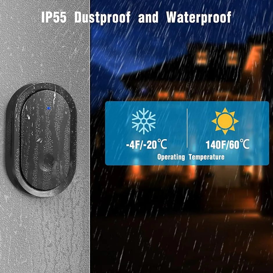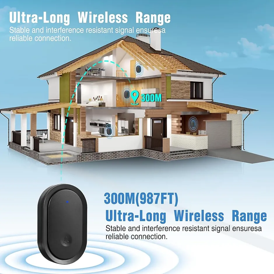 Installation flexible et sans effort : Conçue pour s’adapter à divers environnements domestiques, cette sonnette sans fil extérieur étanche propose deux options d’installation : fixez-la avec des vis pour une stabilité durable ou utilisez le support adhésif inclus pour une installation sans perçage et sans tracasPortée sans fil ultra-longue de 300 m : Profitez d’une connexion stable et fiable avec une portée impressionnante de 300 mètres. Que vous soyez au sous-sol, dans le jardin ou à l’étage, cette sonnette sans fil garantit que vous ne manquerez jamais un visiteurFonction mémoire intelligente pour plus de confort : Plus besoin de reconfigurer vos réglages ! Cette sonnette WiFi sans fil extérieur étanche enregistre la dernière mélodie et le niveau de volume sélectionnés, même après une panne de courant, pour une expérience fluide à chaque utilisationIP55 étanche et résistante aux intempéries : Conçue pour affronter des conditions météorologiques extrêmes, comme la pluie battante, la neige ou les températures extrêmes, cette sonnette sans-fil assure une fiabilité optimale toute l’année pour les maisons, bureaux et appartementsCarillons personnalisables et conception écoénergétique : Choisissez parmi 60 mélodies et ajustez le volume sur 5 niveaux selon vos préférences. Son design à faible consommation d’énergie garantit des performances durables. Grâce à cette sonnette sans fil extérieur, profitez d’un carillon sans fil adapté à votre style de vie et d’une sonnerie sans fil extérieur étanche toujours opérationnelle