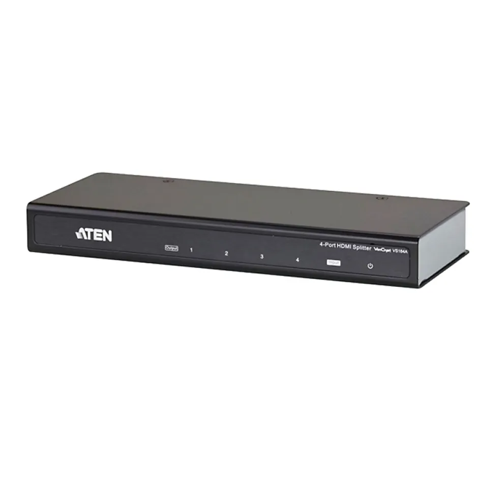 Répartiteur HDMI 4 sorties 3D 4K ATEN (VS184A)Le distributeur HDMI VS184A est la solution idéale pour tous ceux qui ont besoin d’envoyer une source vidéo HD, 3D ou 4K numérique à quatre écrans ou moniteurs en même temps. Il prend en charge tous les équipements HDMI, tels que les lecteurs de DVD, les décodeurs ,téléviseurs ou vidéo projecteurs HDMI.Le répartiteur HDMI VS184A est conforme à la norme HDCP ce qui lui permet d’être utilisé avec toutes les sources ou écrans HDMI dans les applications de home cinéma ainsi que dans les entreprises et les environnements éducatifs et commerciaux.Il prend en charge tous les équipements HDMI, tels que les lecteurs de DVD, les décodeurs satellites et tous les périphériques d’affichage HDMI.Contenu de la boite : 1 x VS184A répartiteur HDMI 4 ports 1 x adaptateur secteur 1 x câble HDMI 1 x manuel d’utilisation