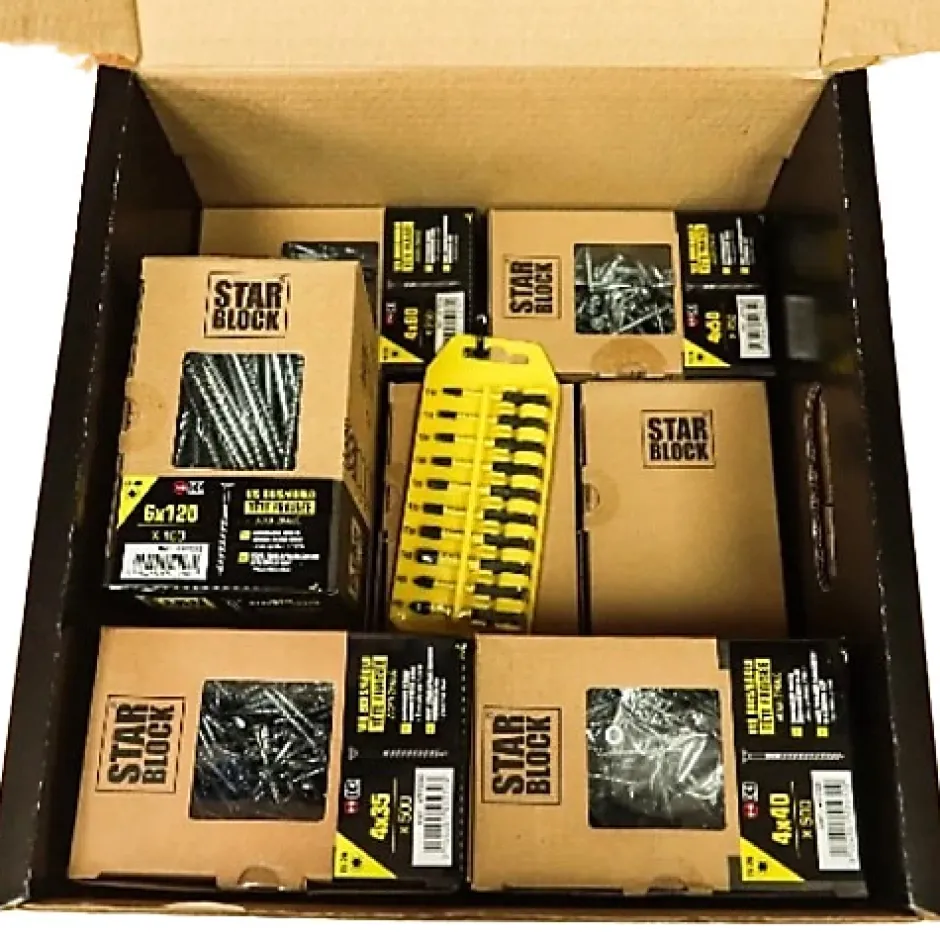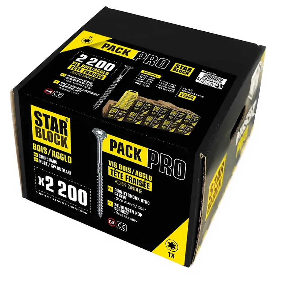 - KIT COMPLET POUR TOUS VOS PROJETS DE BOISAssortiment Starblock de 2200 vis en 9 dimensions pour bois et aggloméré, parfait pour tous vos travaux de bricolage, rénovation ou assemblage en atelier ou à la maison.