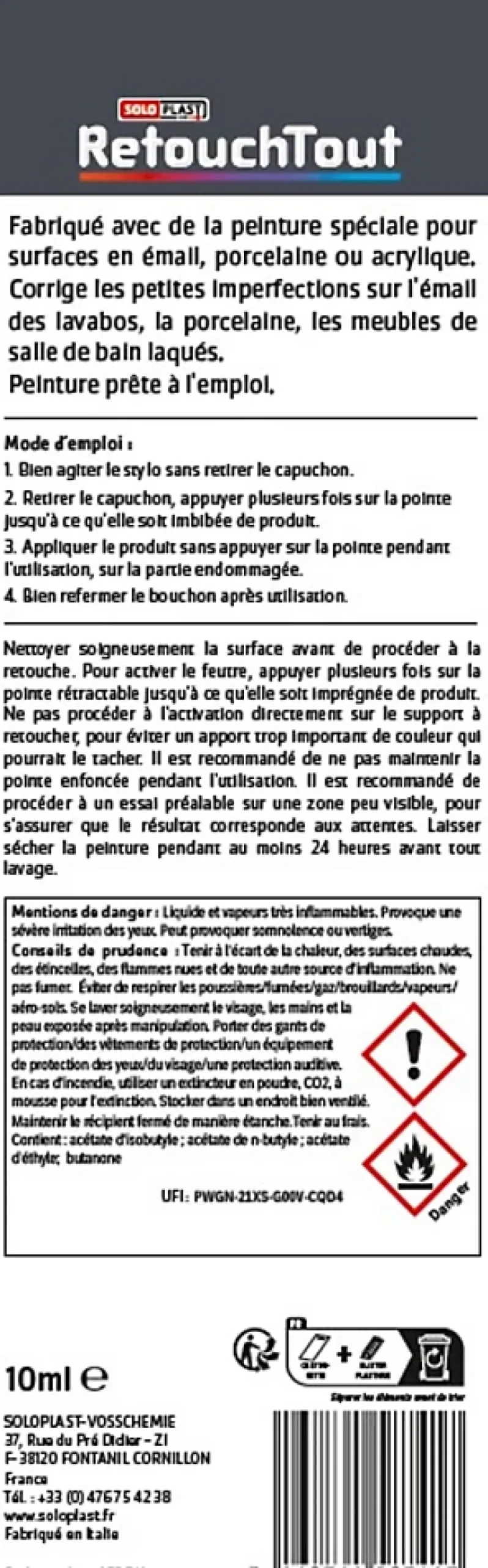 Stylo retouche sanitaires Retouchtout coloris blanc 10ml Soloplast