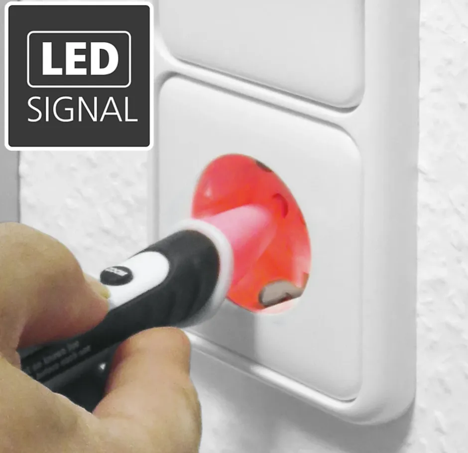 - Localisation des tensions électriques dans les câbles, les prises, les culots de lampes et les fusibles Calcul aisé de la polarité des câbles L/N, par ex. sur les prises et aux bornes de raccordement Détection efficace des coupures de câbles dans les fils et les câbles Très forte sensibilité pour la recherche des câbles à des profondeurs plus importantes Très forte sensibilité pour la recherche des câbles à des profondeurs plus importantes Lampe de poche intégrée avec bouton Marche/Arrêt séparé Boîtier solide, résistant aux chocs
