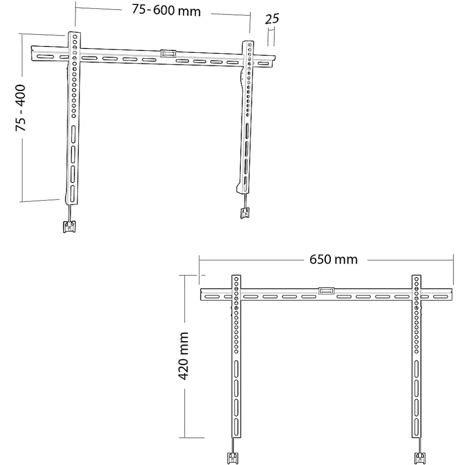- Compatible avec tous les modèles de téléviseurs présentant les trous de montage VESA suivants : hauteur 50 x 50 mm (min) – 600 x 400 mm (max)