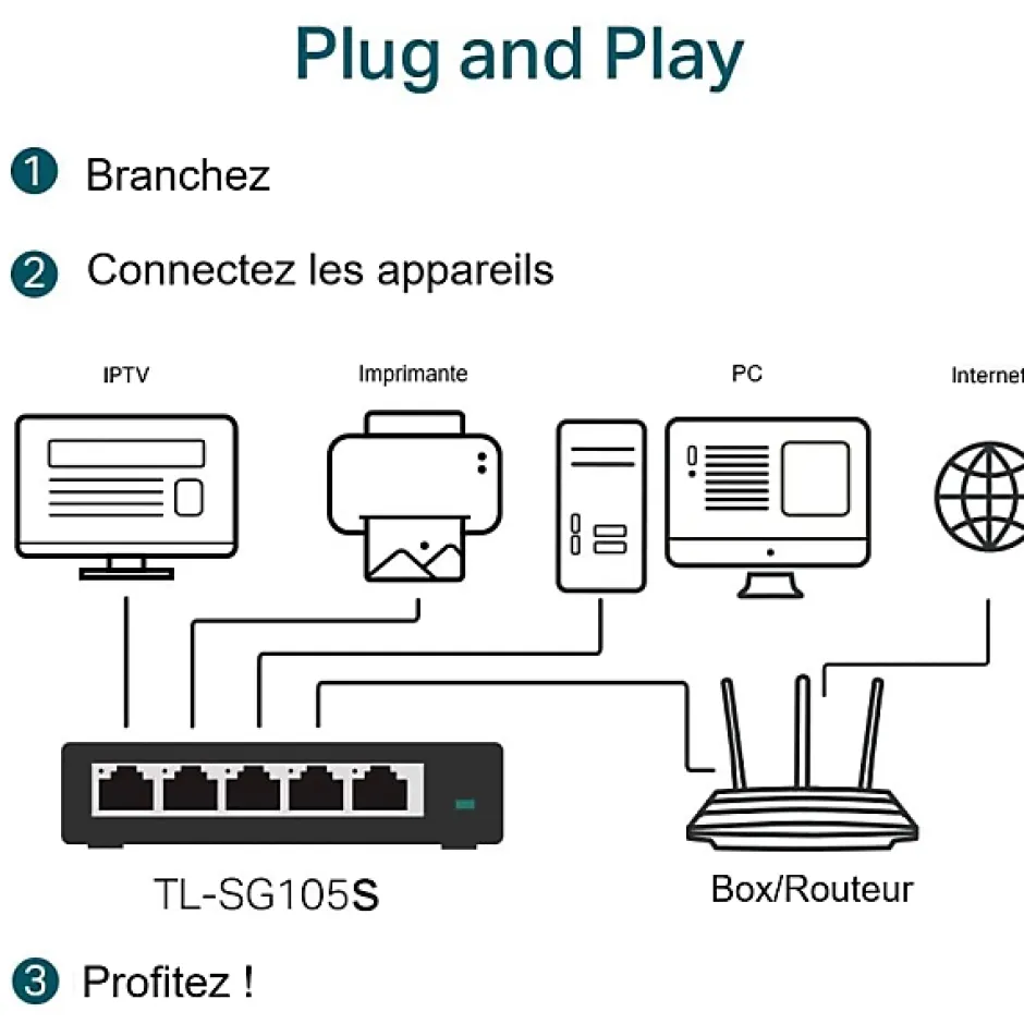- Pratique dans de nombreuses situations. Que vous soyez à la maison ou au bureau, le TL-SG105S vous aide à vous connecter au réseau rapidement et facilement.