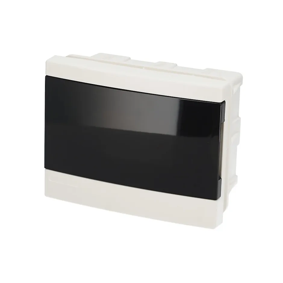Tableau électrique encastré 6 modules, blanc fumé | EDO777839 | EDOTableau électrique moderne et compact, offrant un design esthétique et une grande fonctionnalité.Conçu pour une installation intérieure, idéal pour une intégration murale, il assure une finition élégante et une sécurité optimale des installations électriques.Spécifications techniques :✔️ Nombre de modules : 6✔️ Type de montage : Encastré✔️ Utilisation : Intérieure✔️ Boîtier : Blanc (RAL 9016 ✔️ Porte : Fumée, offrant une visibilité discrète sur le contenu✔️ Matériau : ABS résistant✔️ Bornes PE : Incluses✔️ Nombre de rangées : 1✔️ Fenêtre d’inspection : Oui✔️ Classe de protection : II✔️ Degré de protection mécanique : IK08✔️ Section des conducteurs : jusqu’à 10 mm²✔️ Tension nominale : 230/400 V✔️ Tension d’isolation : 500 V✔️ Courant nominal : jusqu’à 120 ADimensions (L x H x P :✔️ Largeur : 18 cm✔️ Hauteur : 14 cm✔️ Profondeur : 9,5 cm