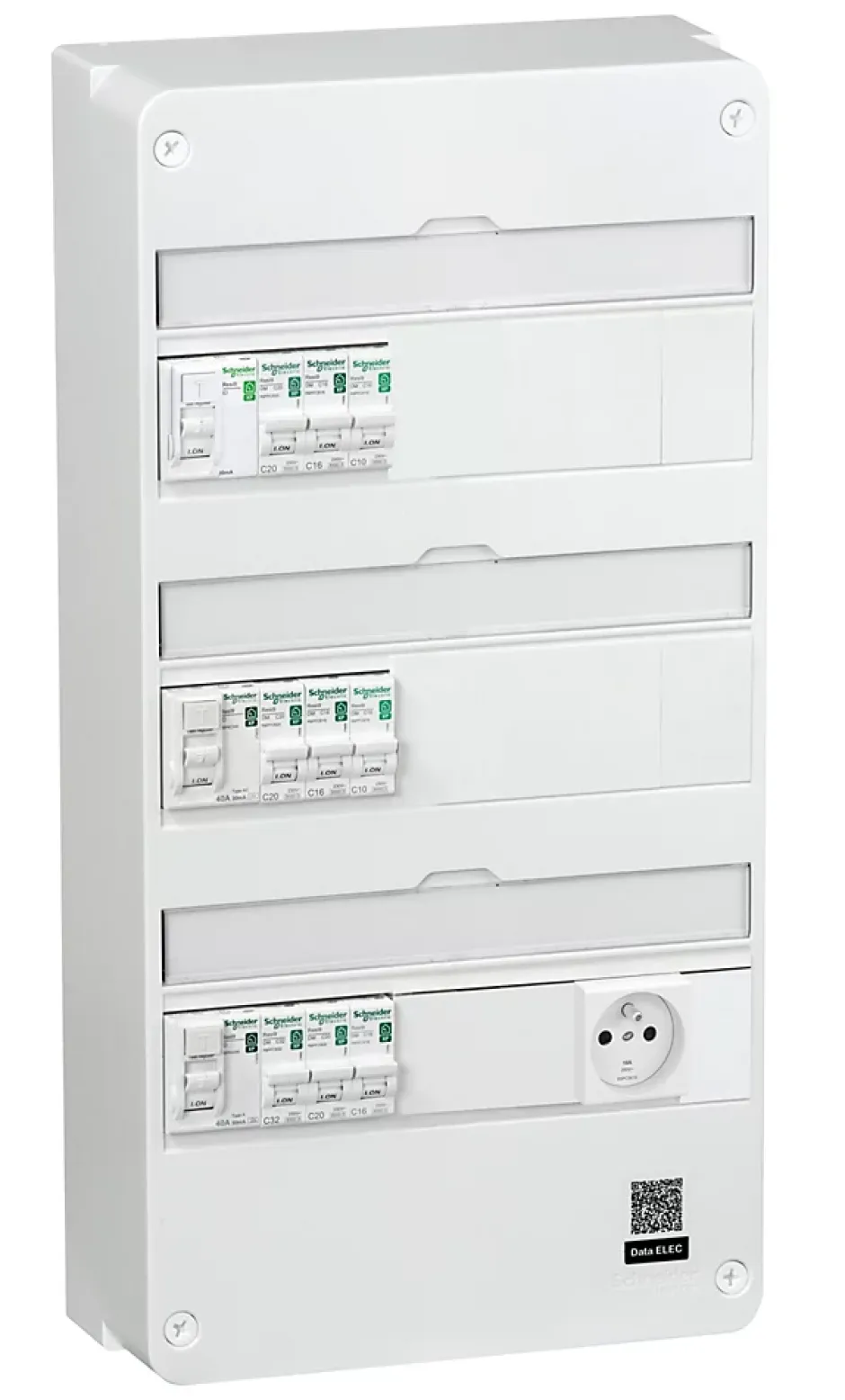 Optez pour la fiabilité avec le tableau électrique pré-équipé Resi9 de Schneider Electric. Son petit plus ? Ce produit est conçu pour être facile à installer tout en offrant une sécurité maximale. Le tableau électrique Resi9 vous garantit une utilisation sereine de tous vos appareils électroménagers, sans aucun souci.