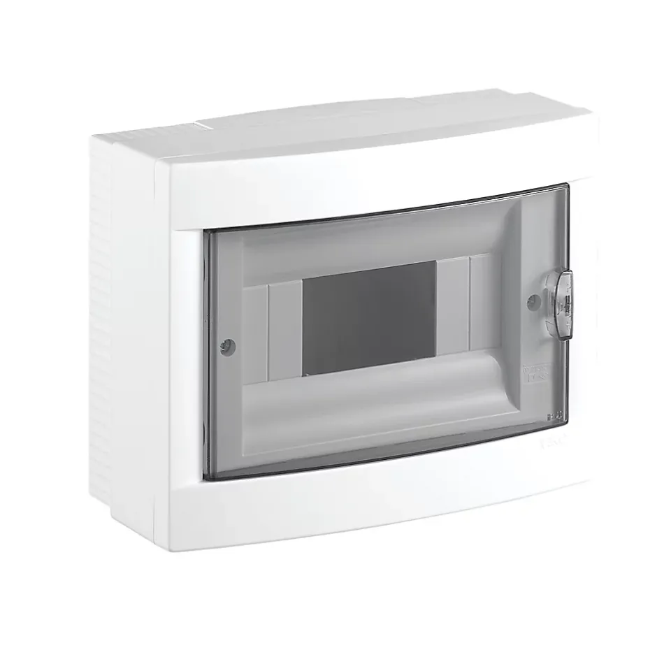 Tableau électrique nu saillie 8 modules – Panasonic Optimisez la distribution électrique de votre logement avec ce tableau nu en saillie 8 modules de Panasonic.Conçu pour les installations domestiques, ce coffret allie sécurité, fiabilité et adaptabilité.Grâce à sa conception modulable, vous pouvez l’équiper facilement selon vos besoins.La qualité Panasonic vous garantit un produit durable, résistant aux chocs et conforme aux normes CE.Installez-le en toute confiance, même dans des conditions difficiles. Les avantages du tableau nu Panasonic Installation rapide : montage en saillie facile, idéal en rénovation ou construction. Modulable : accueille jusqu’à 8 modules standards (17,5 mm) sur une rangée. Porte réversible : ouverture à gauche ou à droite selon votre configuration. Protection renforcée