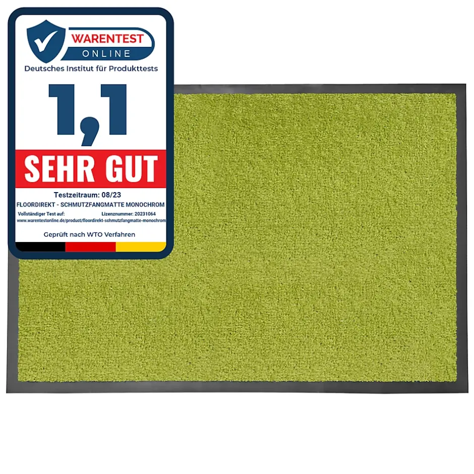 Paillasson « Monochrom » – protection efficace contre la saletéLe paillasson Monochrom allie esthétique et fonctionnalité. Disponible en plusieurs couleurs sobres ou vives, il apporte une touche soignée et accueillante à votre entrée.Nettoyage performantSes fibres en nylon haute torsion (High-Twist-Nylon) agissent comme une brosse, éliminant puis retenant efficacement la saleté et l’humidité. Ce système évite la saturation des fibres et prolonge leur efficacité, prévenant la propagation de la saleté et maintenant les intérieurs propres. Le paillasson peut absorber jusqu’à 3 kg/m² de liquide et saletés. Son support en vinyle garantit stabilité et adhérence.Couleurs durablesLes fibres teintes dans la masse assurent une résistance optimale à l’usure et à la lumière, conservant leur éclat même en usage intensif.Entretien facileUn simple passage d’aspirateur suffit pour un nettoyage courant. Pour des saletés plus tenaces, il est lavable en machine à 30 °C.Caractéristiques techniques :Poils : polyamide, nylon haute torsionBordure en caoutchouc circonférentielleLargeur de la bande de roulement : env. 20 mmHauteur totale : env. 5,5 mmSupport : vinyle, antidérapantPropriétés : antistatique, lavable en machine, compatible chauffage au solNormes : solidité des couleurs (DIN54004, ISO 105E01), isolation acoustique (ISO 140.8), classe de feu Efl