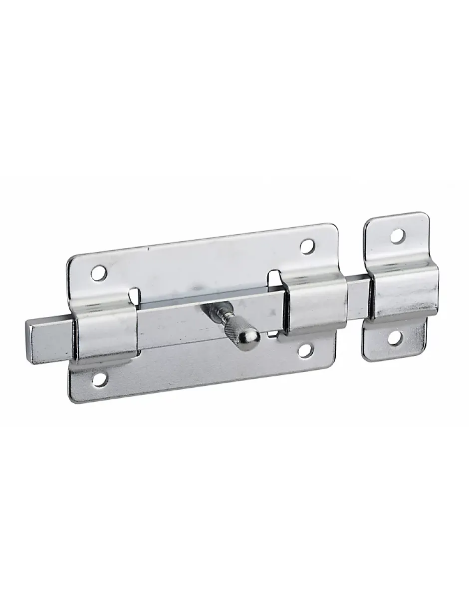Corps acier chromé. Gâche acier chromé. Bouton rond. Pêne plat coulissant.