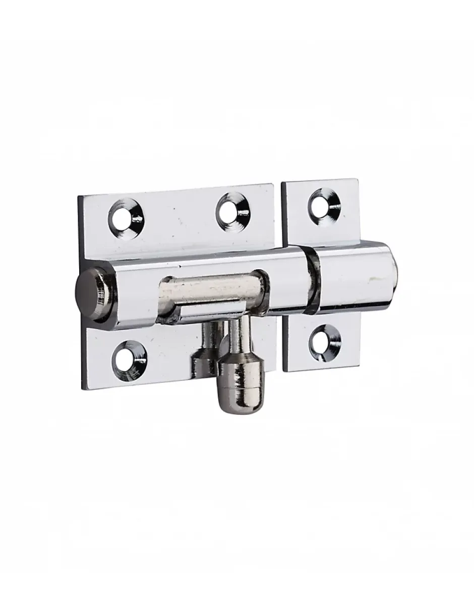 Corps laiton étiré. Gâche laiton étiré. Bouton laiton décolleté. Pêne rond coulissant.