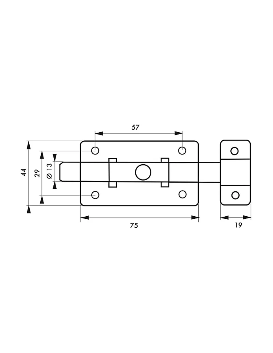Corps acier chromé. Gâche acier chromé. Bouton rond. Pêne plat coulissant.