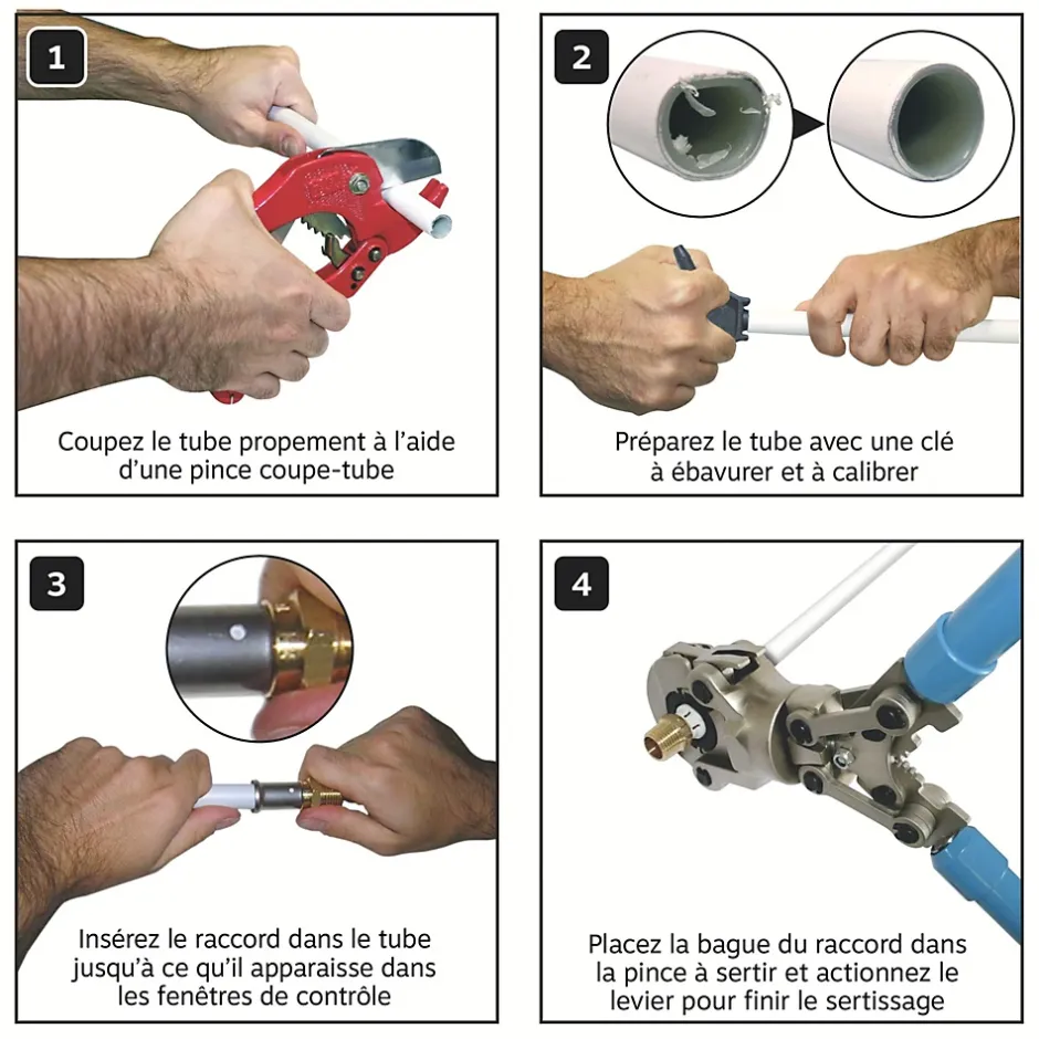 - Compatible pour tube multicouche de diamètre 20 Compatible avec un outillage à sertir de profil H, U ou TH