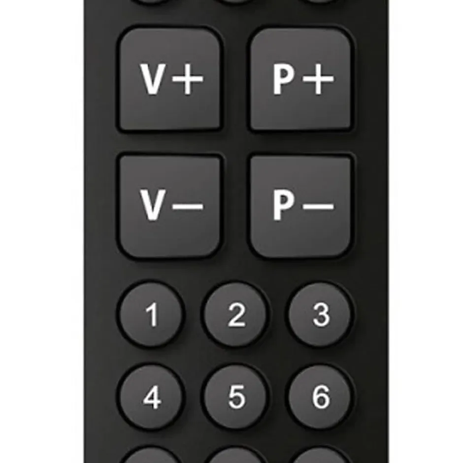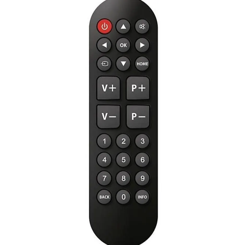 Télécommande universelle CGV Fidelio Easy 5 noire, 25 gros boutons ergonomiques, prête à l’emploi sans programmation pour TV Samsung, LG, Sony, Philips et Panasonic. Portée IR jusqu’à 7 m. Fonctionne avec 2 piles AAA (non incluses). Boîtier noir compact, conforme CE, garantie 2 ans.
