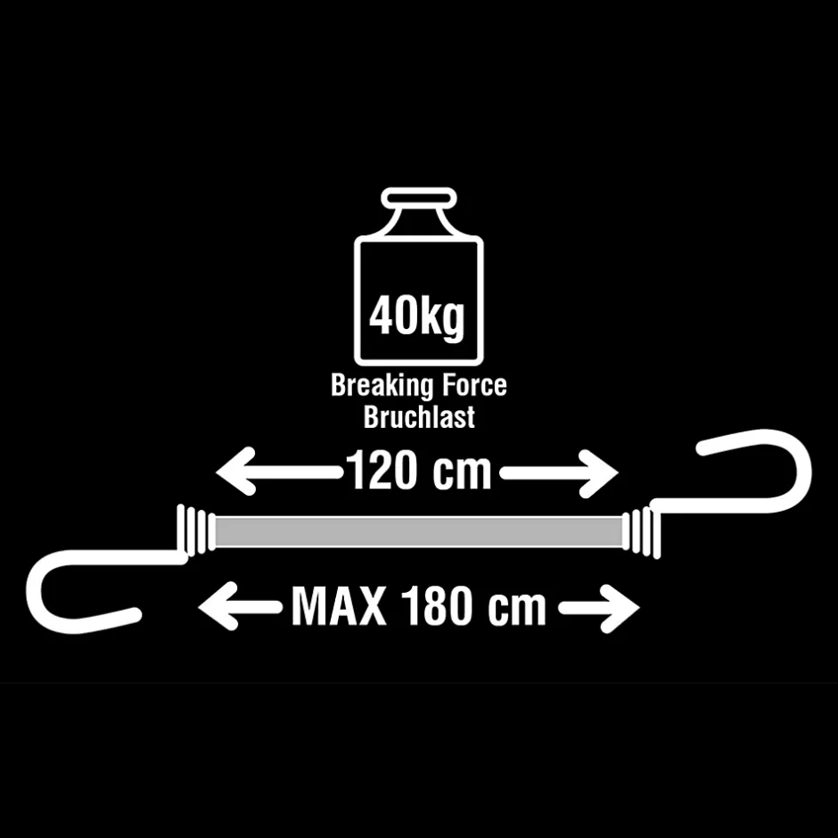 - QUALITÉ PREMIUM: corde de 0,8 cm de diamètre ; étirable de 120 cm à 180 cm ; crochet double fil qui offre une résistance supérieure aux tendeurs traditionnels