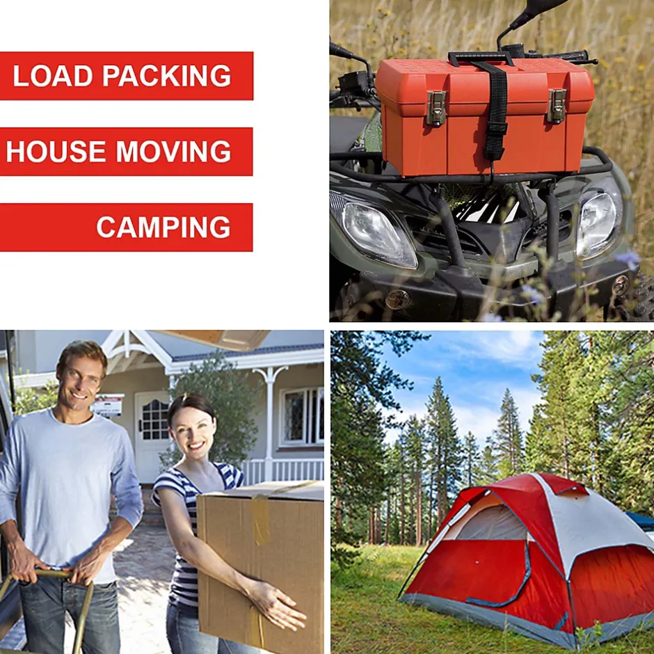 - APPLICATION DU TENDEUR: tendeur plat de 120 cm pour sécuriser et attacher des charges jusqu’à 45kg – vélo, déménagement, camping