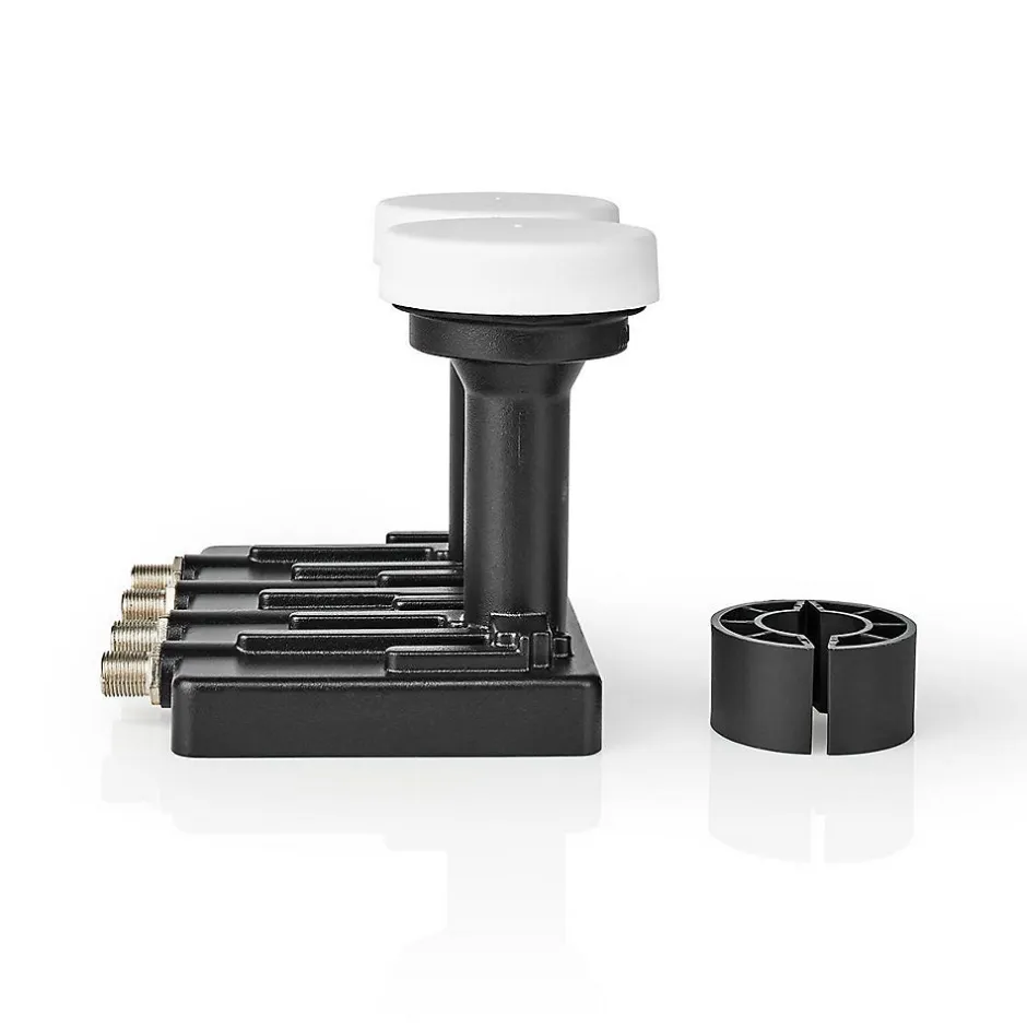 Description du produitMontez cette tête monobloc quadruple 6,0 de Nedis sur des installations nécessitant une puissance et une qualité de signal supérieures. Elle réduit le facteur de bruit. La dernière plage de facteur de bruit est comprise entre 0,2 dB et 0,85 dB.Connectez le monobloc quadruple aux récepteurs satellite par le biais d’un commutateur multiple.Le monobloc offre des signaux sur 4 niveaux : bande verticale haute et basse, bande horizontale haute et basse.Il est adapté à la connexion d’un récepteur satellite à votre antenne parabolique d’un diamètre de 90 à 120 cm.Caractéristiques Faible facteur de bruit : 0,2 à 0,85 dB Convient aux antennes paraboliques de 90 cm à 120 cmContenu de l’emballageMonoblocSpécificationsCommutation à haute bande: 22 kHzCommutation faible bande: 0 kHzConnexion de sortie: 4x connecteur FConsommation de Courant: 0.20 ACouleur: NoirFréquence d’entrée Plage bande basse: 10.7-11.7 GHzFréquence d’entrée Plage bande haute: 11.7-12.75 GHzFréquence de sortie Plage bande haute: 1.100-2.150 GHzGain de conversion: 52-67 dBGain de planéité de bande passante 26 MHz: ± 1Matériau: ABSMatériau: MétalOscillateur local Fréquence bruit de phase: -80 dB c/Hz @ 10 kHz (max.)Plage de bruit: 0.85 dBPlage de température de fonctionnement: -35-70 °CPolarisation croisée: 20 dBPolarité Tension de commutation horizontale: DC 16Polarité Tension de commutation verticale: DC 11Rejet d’image (Min.): 40 dBSortie parasite: -53 dBType d’accessoire satellite: LNBType de convertisseur de modules à f