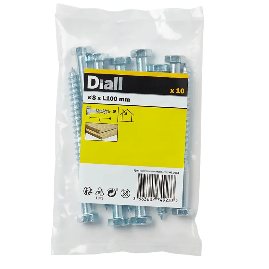 Les 10 tirefonds zingués à tête hexagonale de ce pack sont fabriqués à partir d’acier au carbone. Elles mesurent 100 mm de long, ont un diamètre de 8 mm et sont partiellement filetées sur 60 mm. Ils sont recommandés pour une utilisation sur le métal et le bois. Ce pack est idéal pour tout un éventail de projets de bricolage.