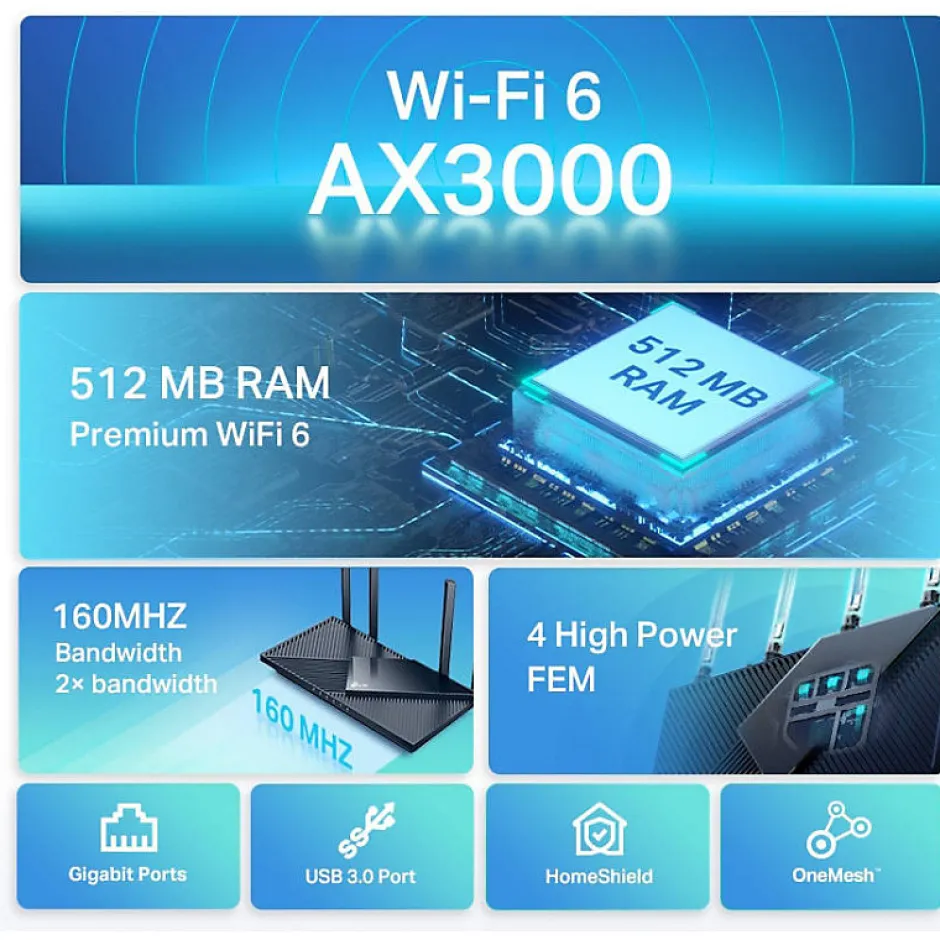 - Sécurité avancée avec protocole WPA3 et TP-Link HomeShield