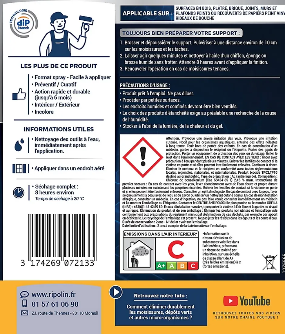 Traitement anti-moisissures intérieur extérieur Ripolin 0,5L