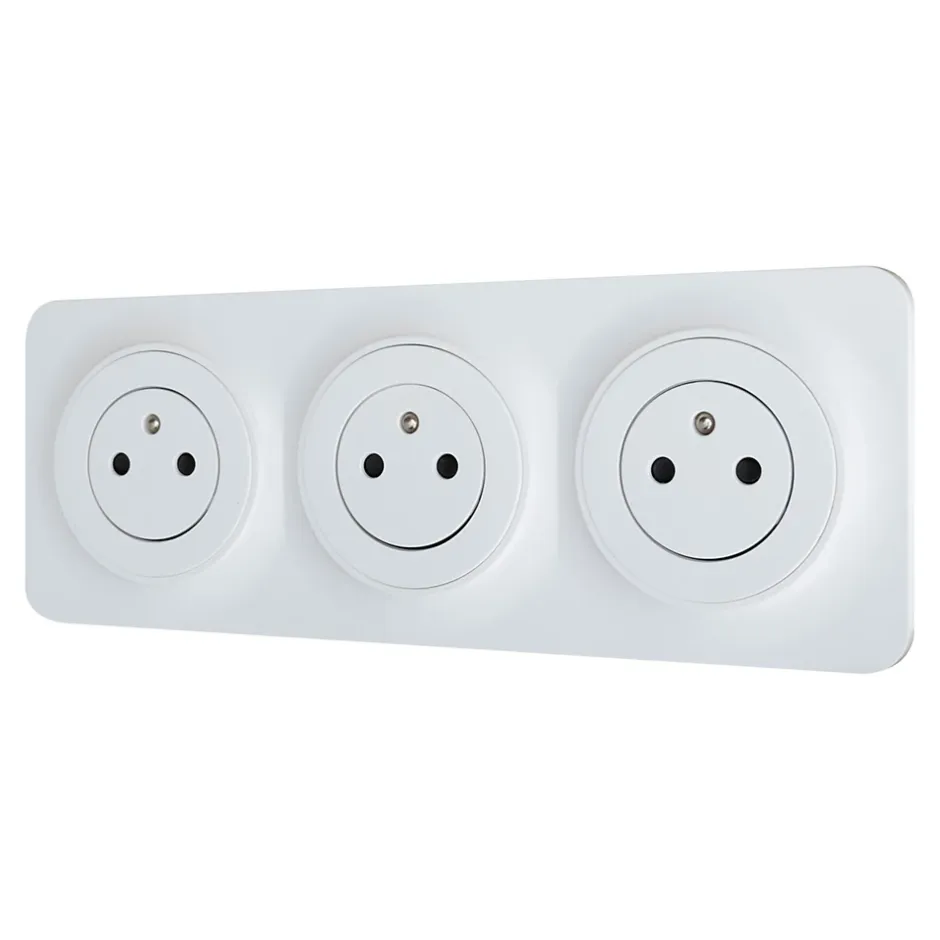Triple prise avec terre prêt câblée Jacobsen Espen blanc composable
