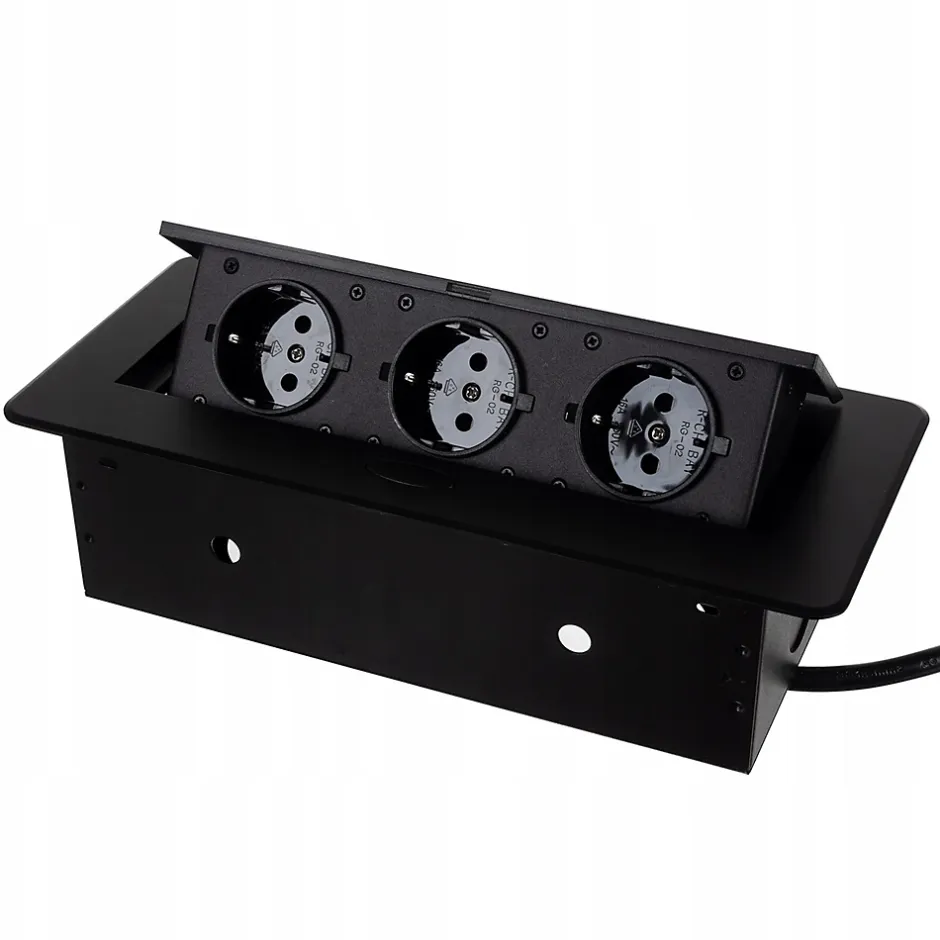 Grâce à son aspect esthétique et à sa fabrication de haute qualité, la bande cachée dans le plateau de table s’adapte à toutes sortes de pièces. Il peut être utilisé dans les maisons, jusqu’aux salles de conférence. Sa forme et son extension garantissent une utilisation maximale de l’espace libre. La prise peut être tirée vers le haut de la table à tout moment pour accéder à l’alimentation électrique, puis cachée lorsqu’elle n’est pas nécessaire. le bandeau se compose de 3 prises secteur avec mise à la terre schuko dans un boîtier dissimulé dans le haut. Le boîtier est en aluminium thermolaqué de haute qualité.INSTALLATION DISCRÈTE DANS LA TABLE – les prises sont montées discrètement dans le plateau du meuble, où elles restent hors de vue , mais toujours là quand vous en avez besoin. Après avoir appuyé sur le bouton dans le boîtier du panneau, les prises glissent automatiquement au-dessus du dessus de table.APPLICATION UNIVERSELLE – les prises cachées ne sont pas seulement populaires dans les cuisines. Parfait pour le salon ou le bureau. Vous installerez l’appareil dans bureau, comptoir ou table, aussi dans position verticale qu’horizontale .GAMME PLATE – les prises encastrées dans le dessus sont pratiquement invisibles. Le rebord profilé plat s’intègre parfaitement à l’environnement, et l’ensemble s’accordera avec le décor.alimentation:230VAC/50Hz UEnombre de prises : 3type de prises : 3P+Zcharge maximale : 3300WMise à la terre Schukolongueur du câble : 1,9 mcouleur noiredimensions : 26,5 x 12 x 7 cm dimensions du trou de montage : 22 x 10,8 x 6,5 cm (largeur/hauteur/profondeur)poids : 1,608 kgpoids dans l’emballage : 1,764 kg