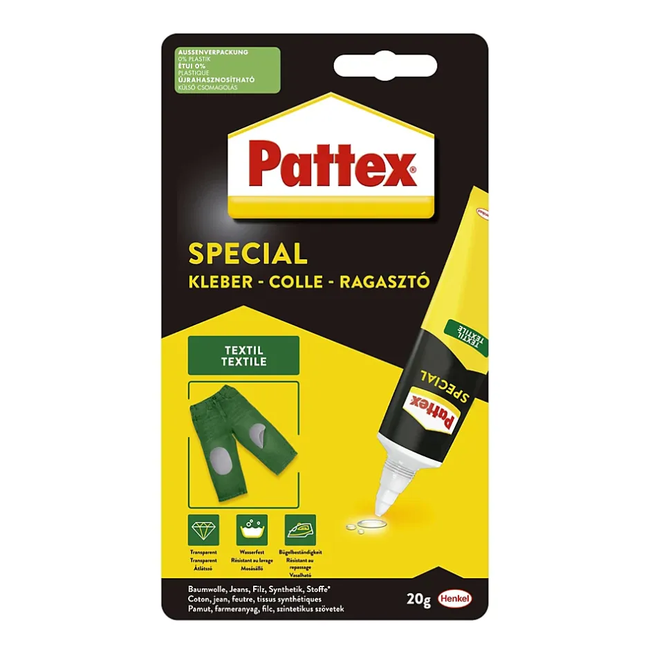 Pattex Spéciale Textile est une colle unique spécialement conçue pour une adhérence durable sur les tissus. Elle permet de coller différents types de tissus tels que le coton, le jean, le lin, le feutre ou encore le tissu synthétique. Cette colle s’utilise même pour les combinaisons avec le bois, le cuir et le métal. Pattex Spécial Textile résiste à l’eau et peut être repassée. La formule unique de cette colle transparente assure une haute adhérence et ne laisse aucune trace après séchage. La colle à tissu atteint sa résistance initiale après 30 à 60 minutes et sa résistance finale en 24 heures. Son étui ne contient pas de plastique.