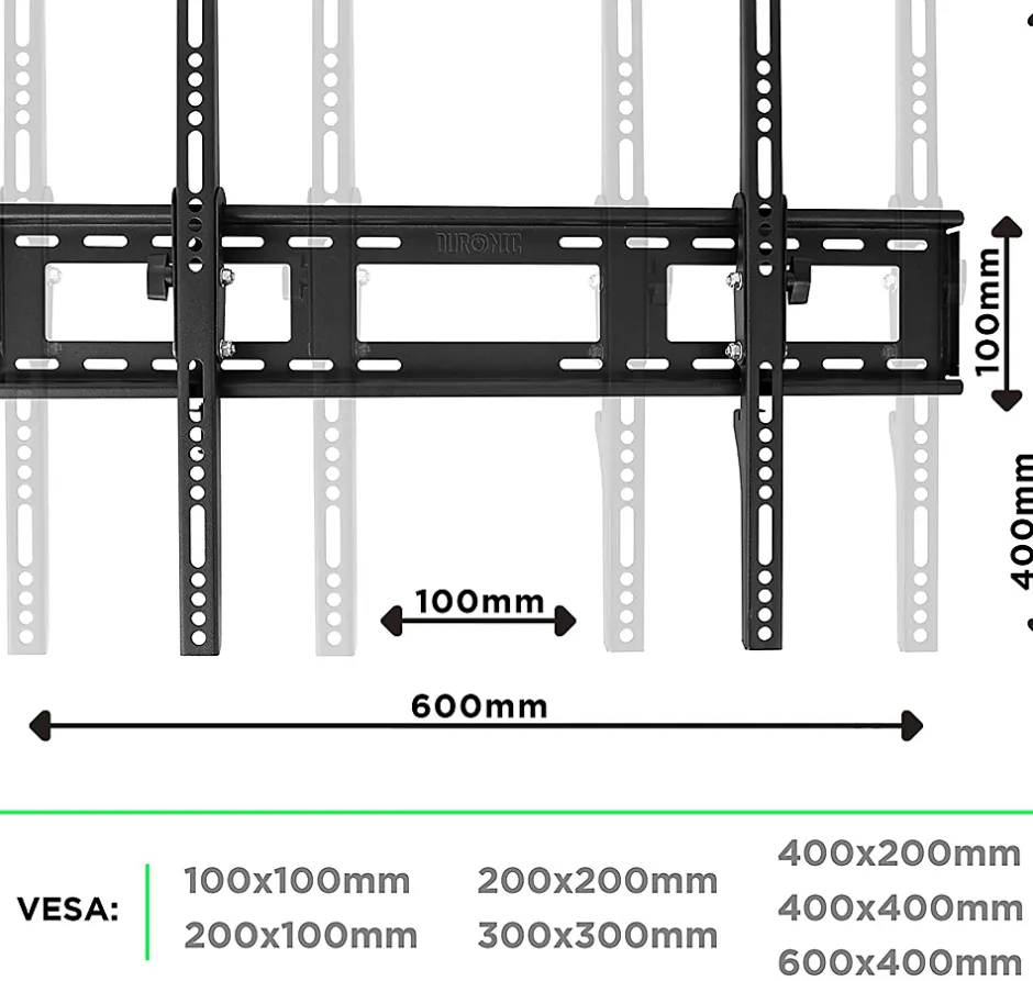Le design très fin de ce support réduit la distance de l’écran par rapport au mur à 30 mm seulement pour offrir une solution idéale aux pièces où vous ne souhaitez pas que l’écran se démarque du mur.Produit avec des feuilles d’acier en métal très solides pour offrir une solidité hors-pair, ce support permet une charge de 65 kg. Compatible avec tous les écrans dont la taille est comprise entre 23 et 55 pouces / 58 et 140 cm avec la norme VESA 600 x 400 ou inférieure.Veuillez mesurer la hauteur et la largeur de votre télévision pour vous assurer qu’elle soit plus grande que le support dont les dimensions sont de 640 x 420 mm.Ce support s’incline de -12° afin de vous permettre d’installer votre écran en hauteur pour un meilleur confort de vue. Livré complet avec accessoires de montage.
