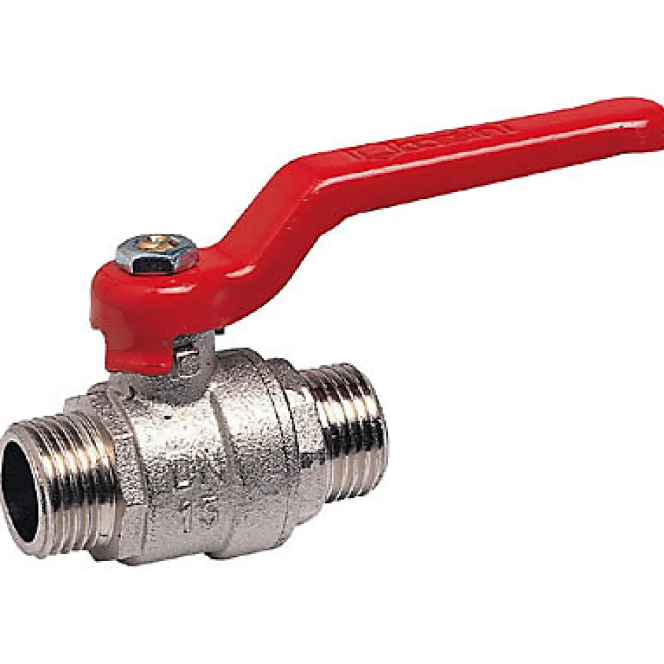 Vanne 1/4 de tour à bille pleine en laiton chromé dur.Siège PTFE.Qualité eau potable.Température d’utilisation :150 °C.Presion maxi:20 bars.A sphère poignée longue-passage intégral mâle/mâle 15/21.Passage intégral.