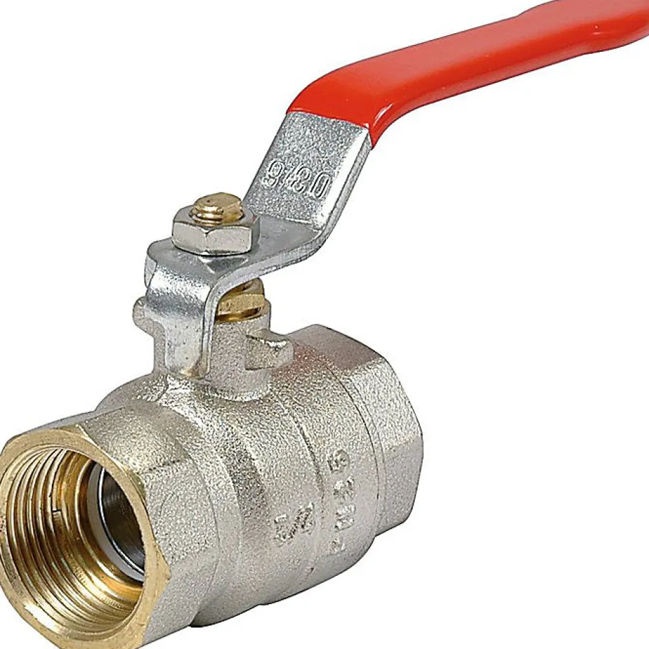 Vanne à sphère nickelé Filetage : FF 1’1/4 (33×42) Manette plate rouge Vendu par 1
