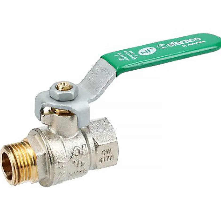 Vanne à boisseau sphérique nickelé Série NF Filetage : MF 3/8′ (12×17) Manette plate verte Vendu par 1