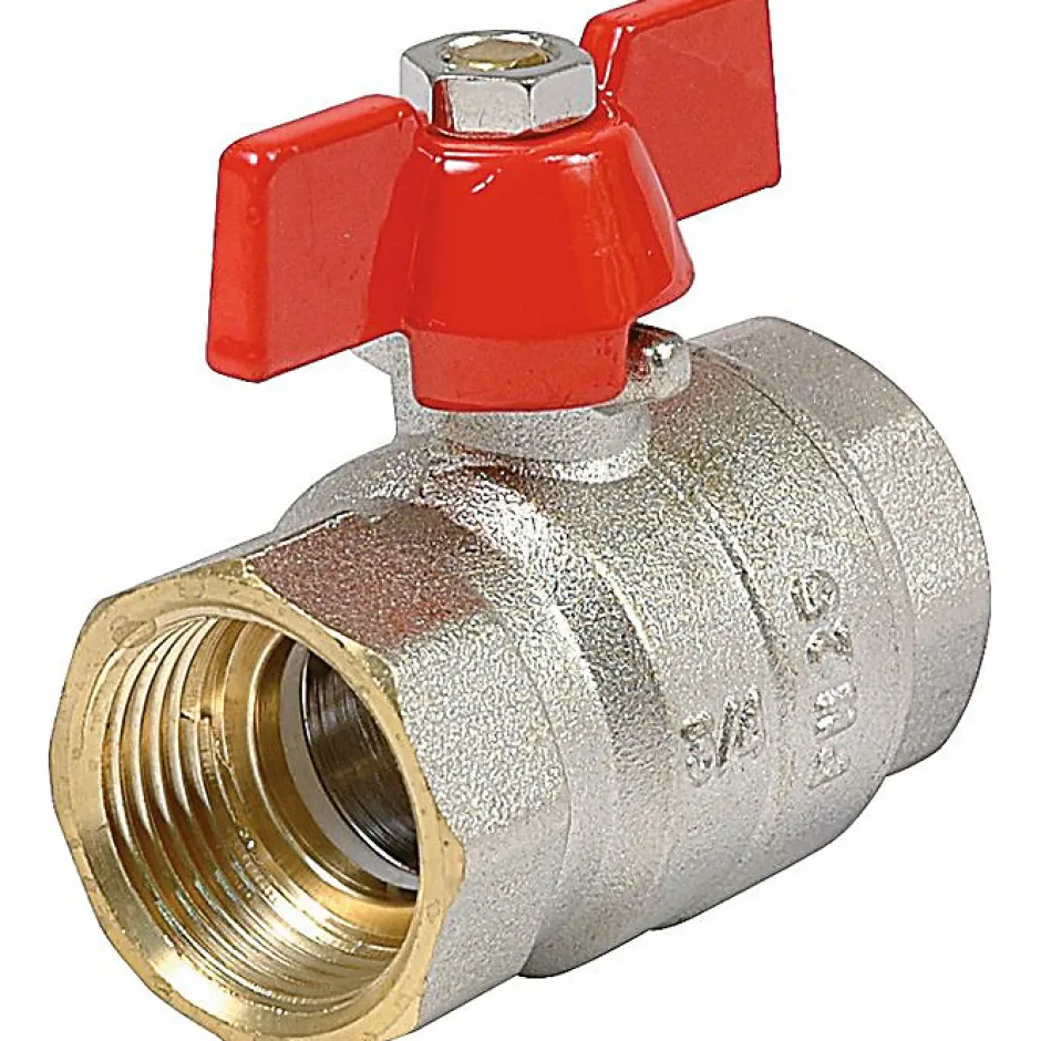 Vanne à sphère nickelé Filetage : FF 1′ (26×34) Manette papillon rouge Vendu par 1