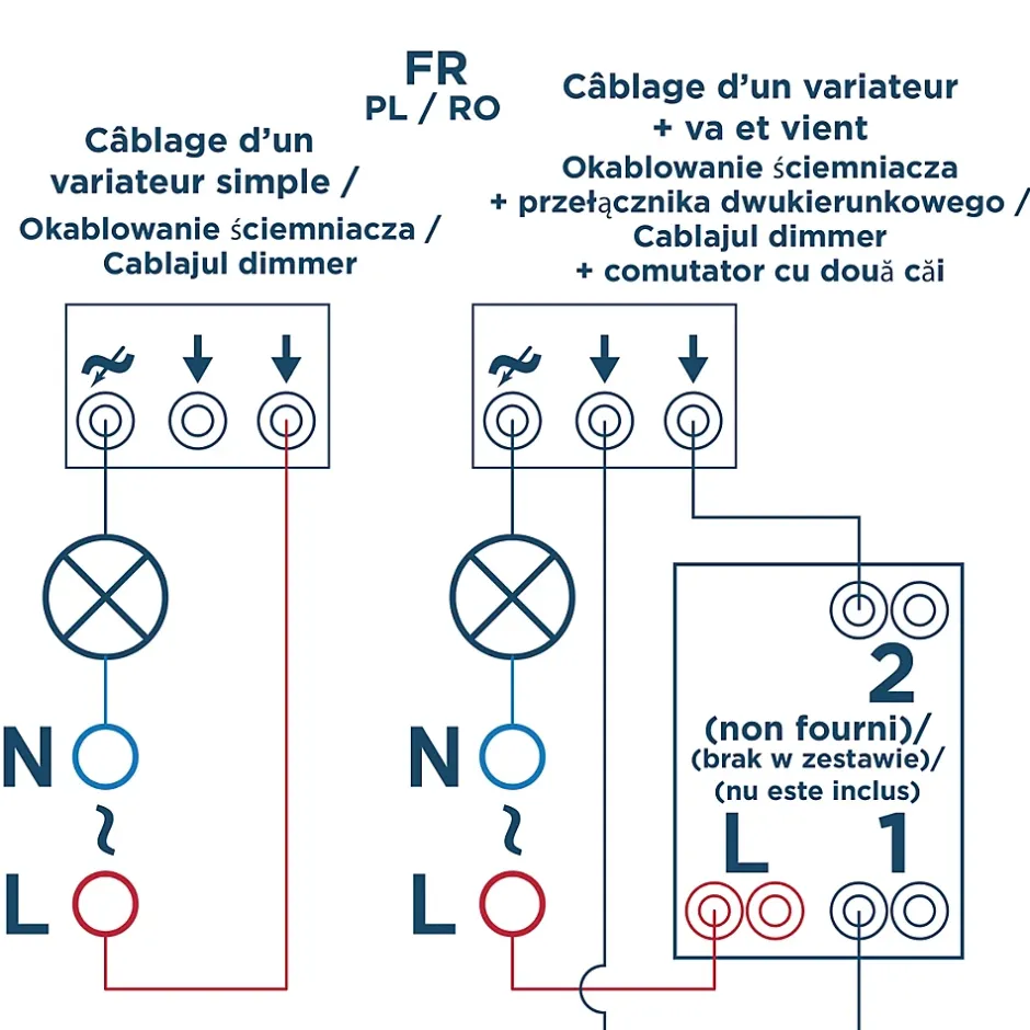 - Griffes et vis : installation à l’aide de griffes et de vis permettant de fixer l’équipement dans des boîtes d’encastrement neuves ou anciennes