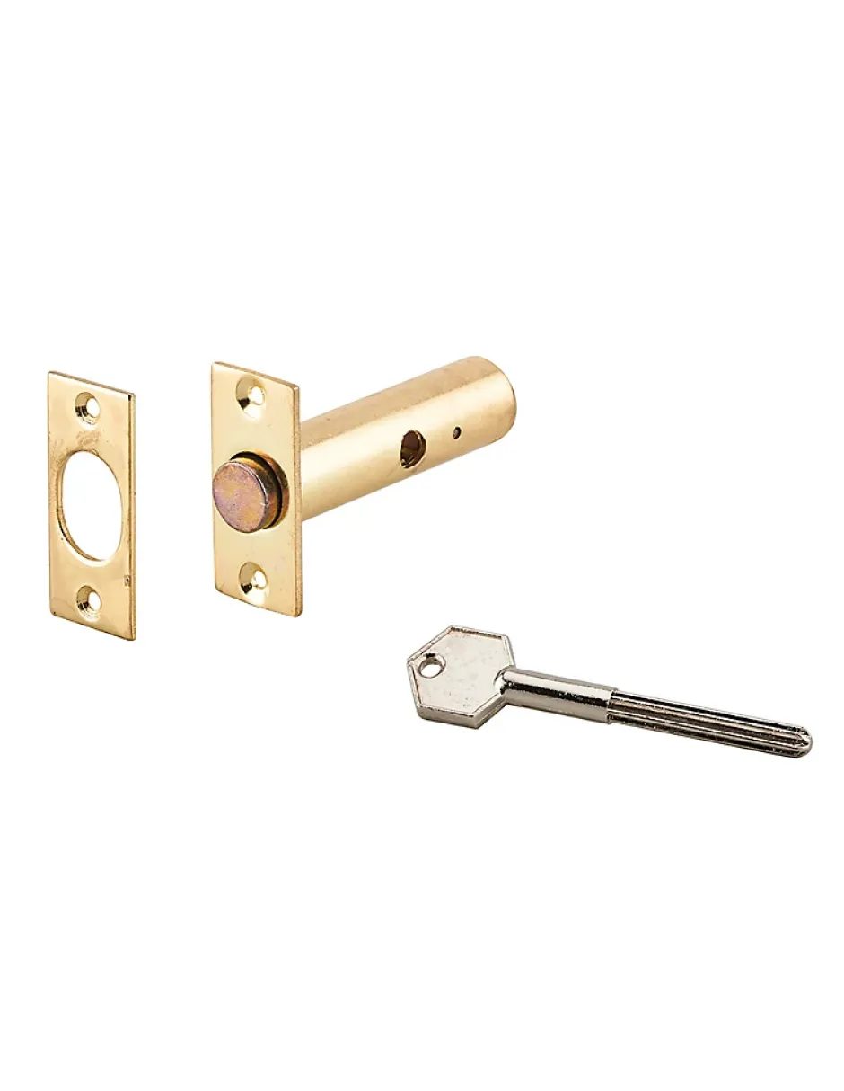 Corps acier. Pêne alliage. Mécanisme à 1 tour. 1 clé. Finition laitonnée. Pêne long. A encastrer sur fenêtre en bois.
