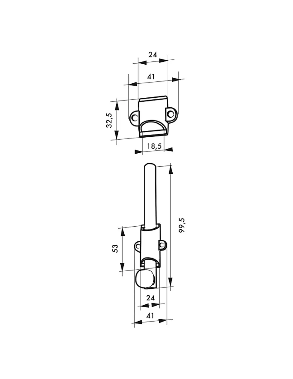 Verrou à plaquer à coulisse. Corps alliage. Pêne ½ rond.
