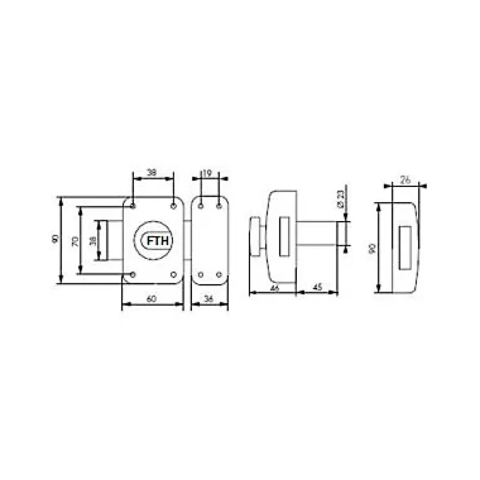 Verrou de sûreté bouton/cylindre 45 mm Thirard Apache + gache encastrer