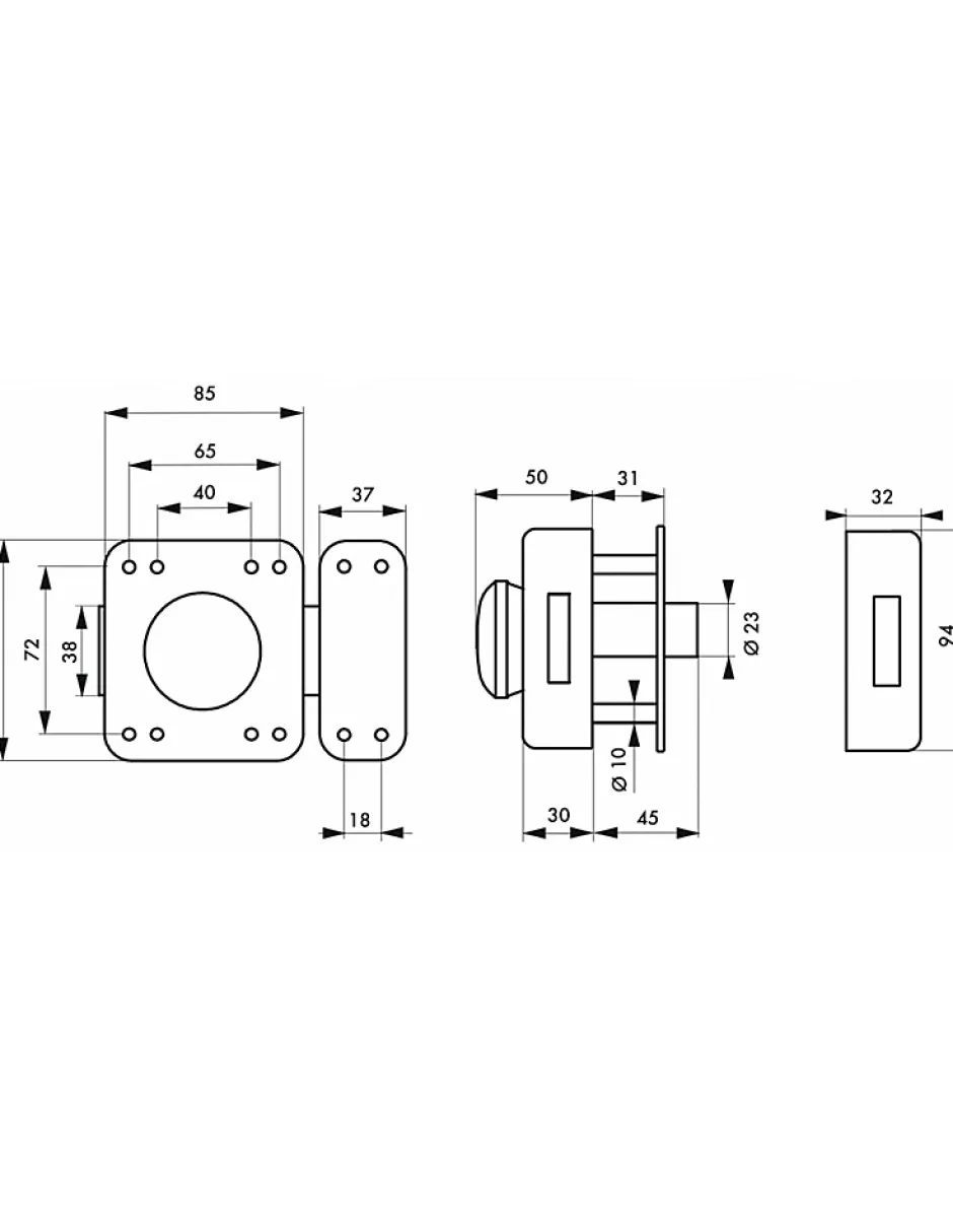 Coffre acier embouti. Gâche acier embouti. Pêne acier nickelé. Mécanisme intérieur renforcé. (brevet déposé). Double fixation sur coffre à 8 vis. (brevet déposé). Plaque de renfort. Cylindre laiton à 5 goupilles. Entrée laiton. 3 clés en acier nickelé.