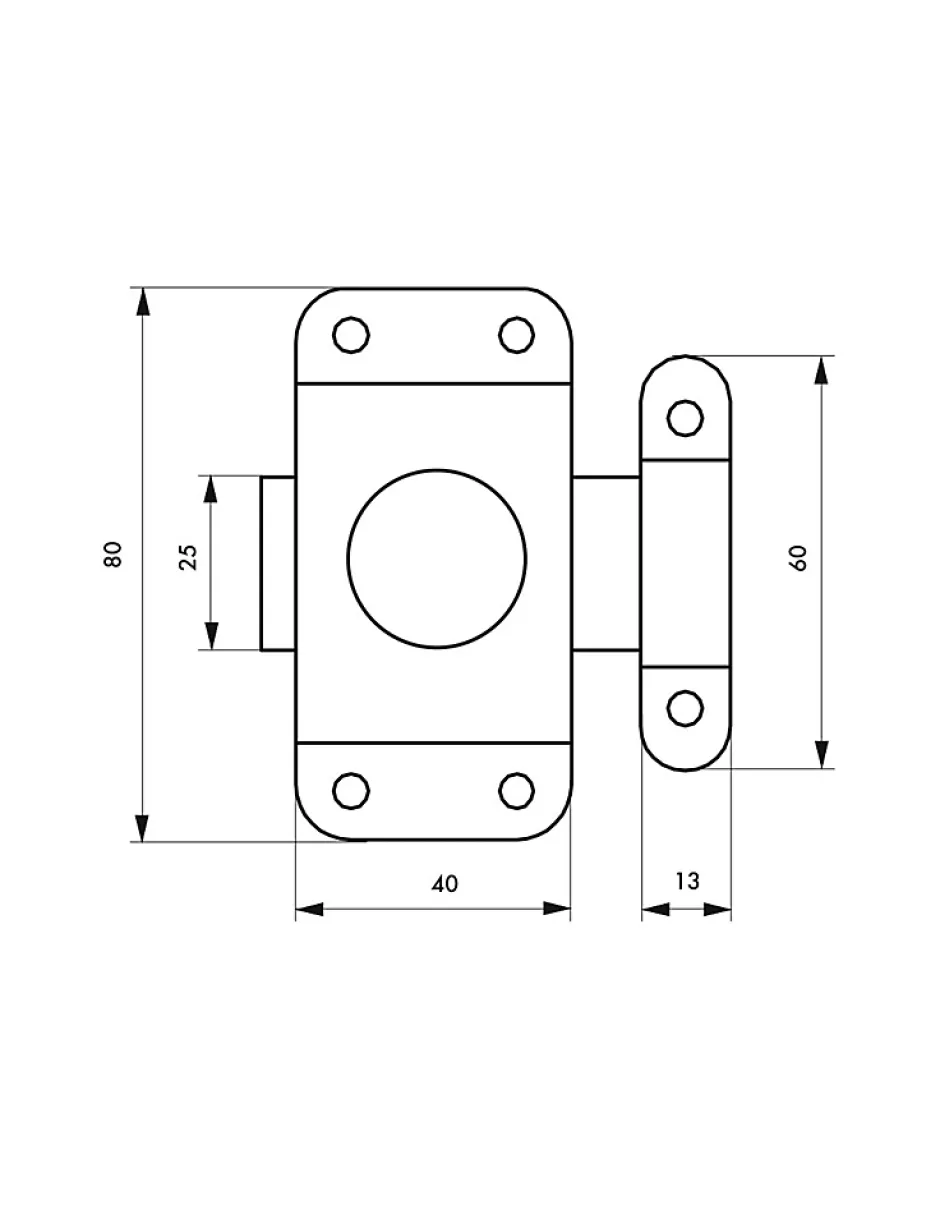 Coffre acier cambré. Gâche acier cambré. Bouton tournant. Pêne plat.
