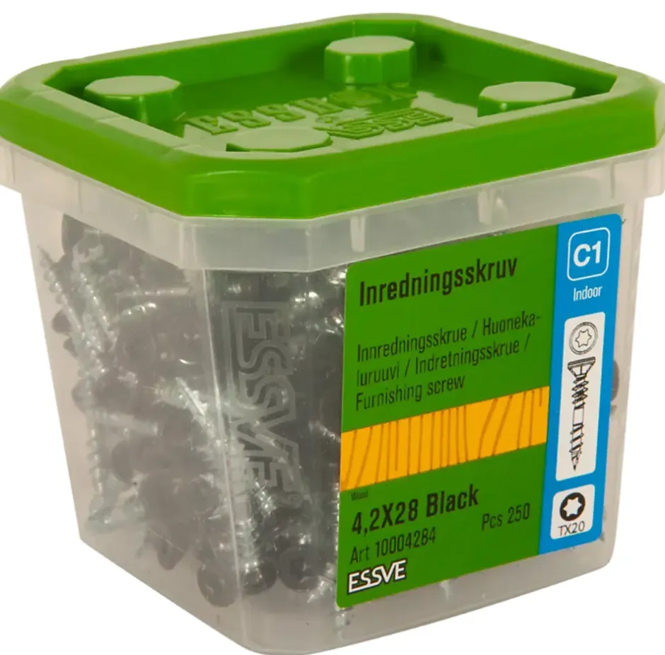 Les vis à bois ESSVE pour corps de meubles et aménagement intérieur de dimensions 4,2 x 28 mm constituent la solution idéale pour les professionnels et les bricoleurs exigeants en matière de qualité et d’esthétique. Ces vis ont été spécialement conçues pour garantir une forte capacité de maintien dans le bois et les panneaux dérivés, ce qui les rend parfaites pour la fabrication de meubles, l’aménagement intérieur ainsi que le montage de bois et panneaux. Les têtes de vis disposent d’un revêtement coloré qui assure non seulement une finition harmonieuse, mais met également en valeur le caractère spécifique de vos éléments de mobilier.Parmi les caractéristiques principales des vis pour meubles ESSVE : Têtes de vis colorées en blanc, noir ou argenté pour une adaptation parfaite aux surfaces des meubles Têtes demi-rondes et décoratives pour un résultat propre et esthétique sans capuchons supplémentaires Filetage optimisé pour bois, MDF, panneaux de particules et panneaux de meubles Application facile grâce à une pointe affûtée et une empreinte TX (Torx) pour une transmission optimale de la force sans glissement Conditionnement de 250 pièces par boîte – idéal pour les projets de plus grande envergureProfitez des avantages des vis pour meubles ESSVE pour valoriser les assemblages visibles dans vos projets et obtenir une finition professionnelle, à la fois esthétique et fonctionnelle. Faites confiance à la qualité éprouvée ESSVE pour vos applications exigeantes.