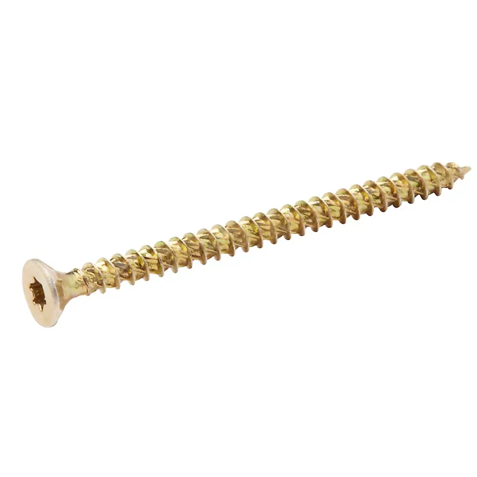 Les 100 vis à bois premium zinguées jaunes à double tête fraisée de ce pack sont fabriquées à partir d’acier. Elles mesurent 50 mm de long et ont un diamètre de 3,5 mm. Elles sont idéales pour tout un éventail de projets de bricolage.