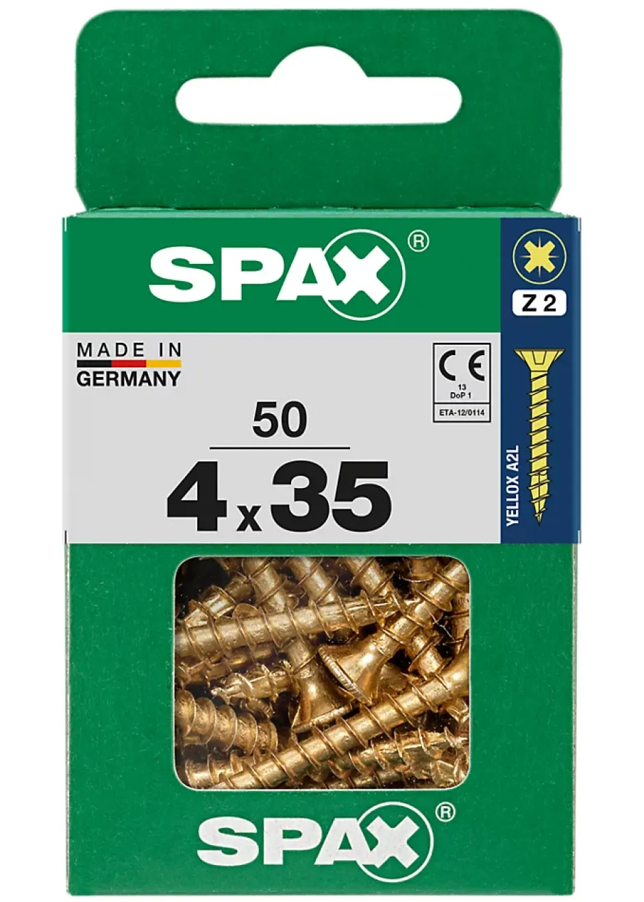 Vis à bois Spax torx pz jaune 4×35 mm – 50 pièces